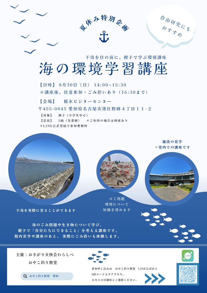 夏休みの特別企画として、親子で学べる「海の環境学習講座」を開催します。